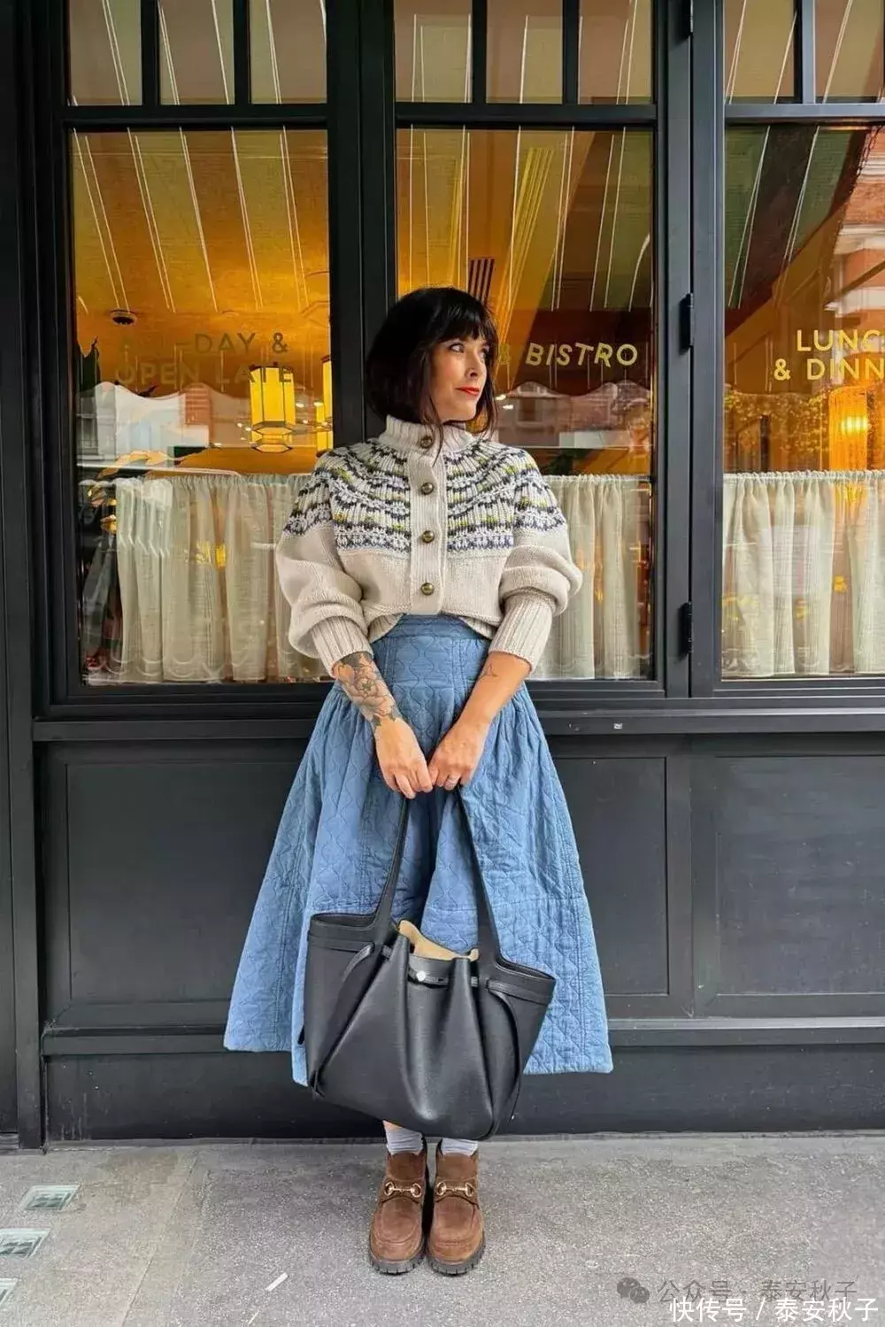 冬天,想要穿得温柔轻盈,又想有自己的时尚态度,用费尔岛外套配优雅裙子就ok。